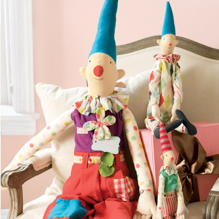 Whimsical Danish design brings these adorable birthday clowns to life! Give one little jester or a family of three to someone special on their important day. When displayed year after year, Bon Anniversaire Clowns will become a favorite birthday tradition. Life size clown measures 46", medium clown measures 22", and petite clown measures 19". Clowns come gift wrapped in a hand crafted wood crate with ribbon.
