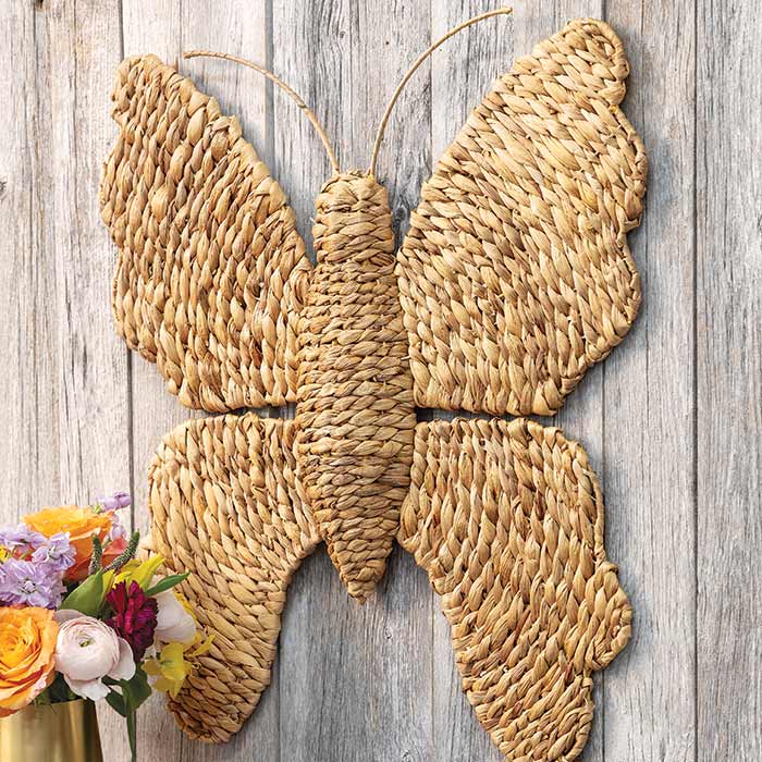 NEW! Add nature inspired beauty to the home with our Artistic Woven Butterfly. Hand crafted of natural fibers on a sturdy wire frame, art piece is suitable for display indoors or in a protected outdoor area. Measures approximately 23" x 25" and arrives packaged in Olive & Cocoa® gift wrap with ribbon.