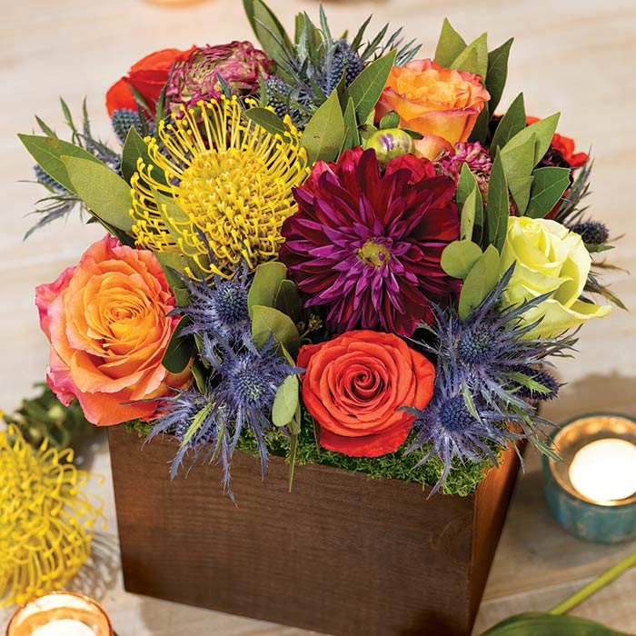 Nothing radiates stunning beauty and grace like a bright flower arrangement from Olive & Cocoa. Our specialty floral arrangements are designed by master floral designers and bloom with only the most elegant, fresh, bright, and cheery flowers. Every bright floral arrangement arrives ready for display in a hand-crafted wood planter. Send one to a friend or family member to let them know that they're on your mind. Or have a personal floral arrangement delivered to your home to brighten your favorite space! Our colorful arrangements will fill your home with the splendid aroma of fresh, fragrant flowers.